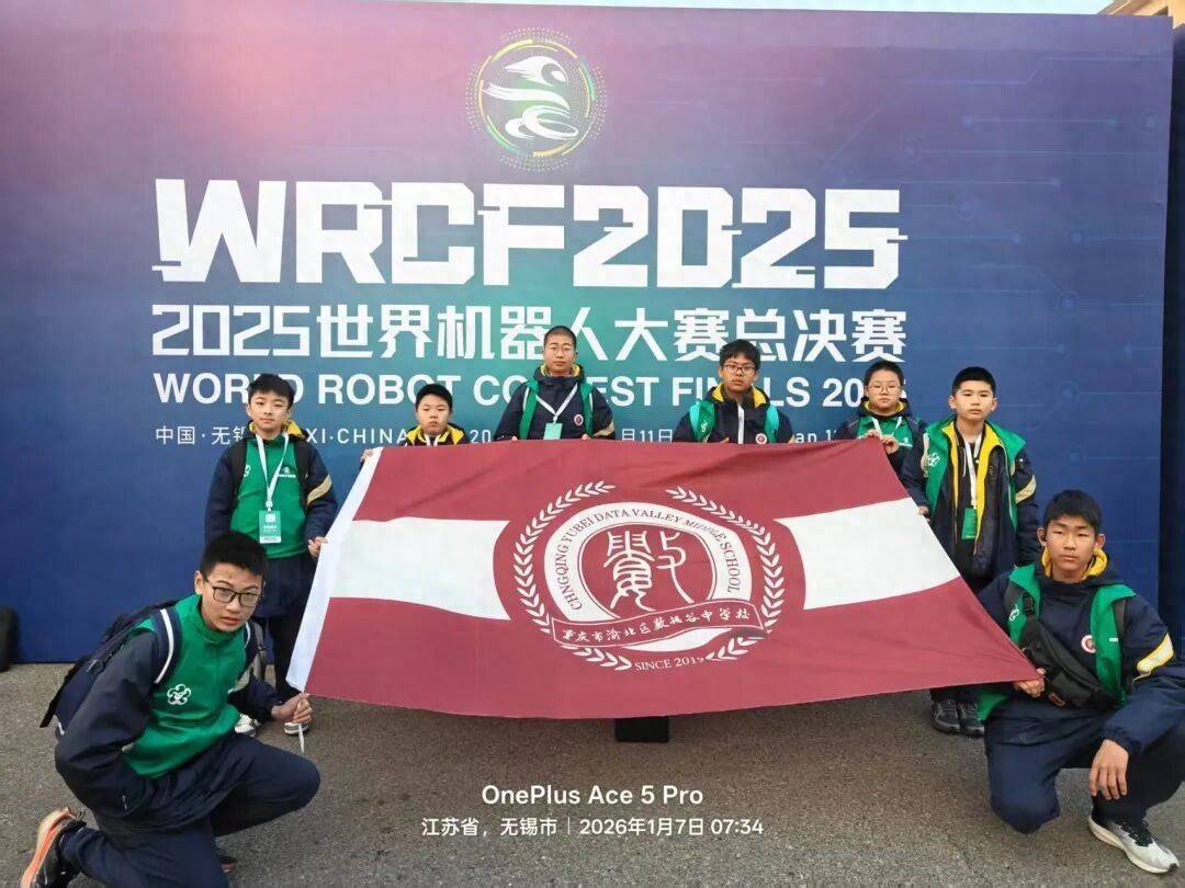 近日,重庆八中数据谷中学校 初一年级陈靖轩(2班)、朱晋坤(16班)、汪承熠(28班)三位同学在江苏无锡举办的2025年世界机器人大赛——机器人设计大赛总决赛(智慧城市·初中B组)中脱颖而出,勇夺全国一等奖第一名!